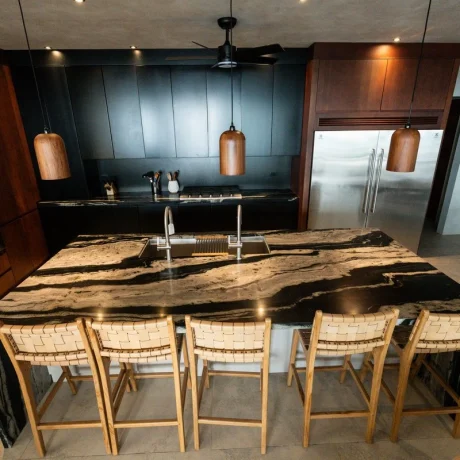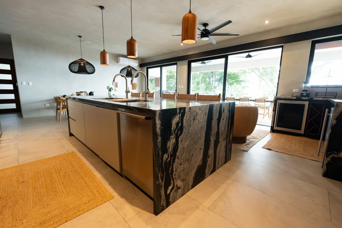 En Residencial Ayacucho, Dominical, se instalaron sobres de cocina y baño elaborados en materiales premium como granito exótico eclipse, piedra sinterizada y cuarzo. Una combinación que aporta resistencia, sofisticación y armonía con el estilo residencial de la zona costera.